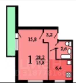 жилая 16 кв.м., кухня 6,4 кв.м.