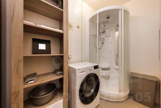 - Гостевой санузел оснащен итальянской сантехникой марки TEUCO: удобная душевая кабина с функцией массажа и традиционной турецкой бани, дополнительно установлена стиральная машина, унитаз, гигиенический душ, бойлер и тёплый пол.