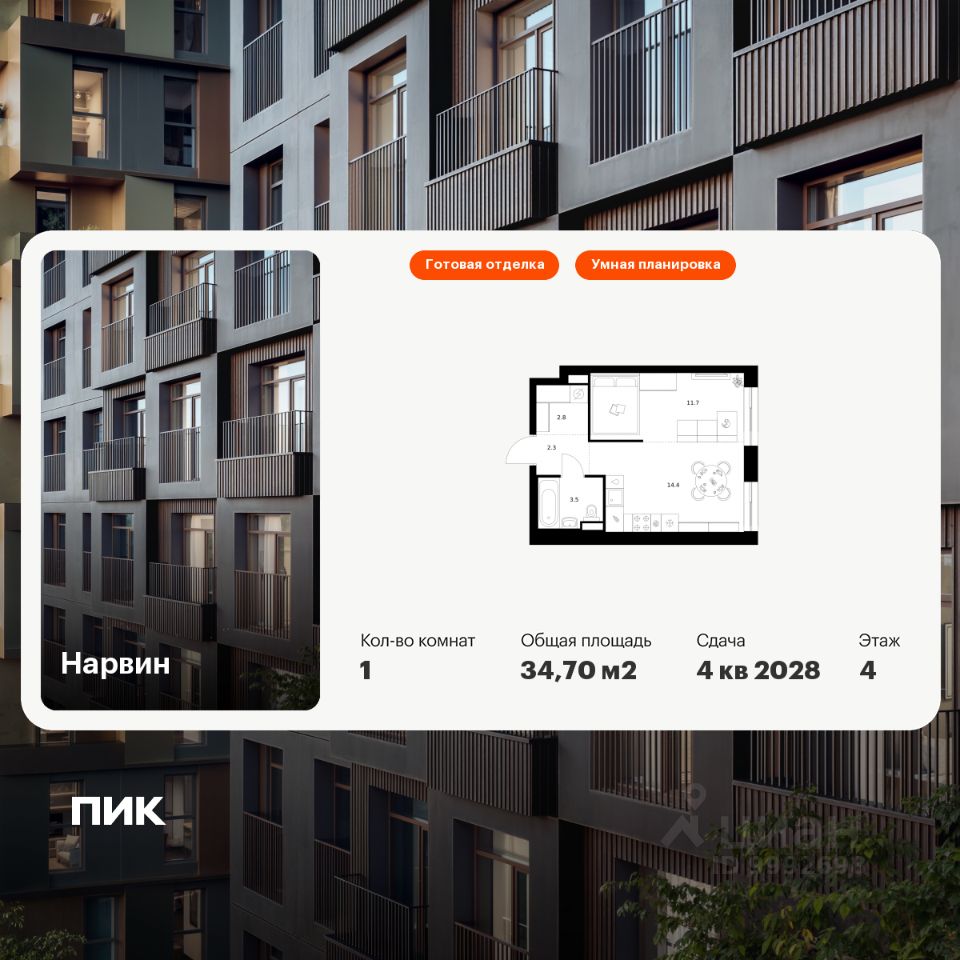 Новостройка! Продается 1-комн. кв-ра площадью 34,7 кв.м, (Корпус 1.3, Секция 3) 4 этаж 38-этажного дома в Нарвин от ПИК. Новый проект ПИК Серии плюс "Нарвин" возводится в Головинском районе Москвы.