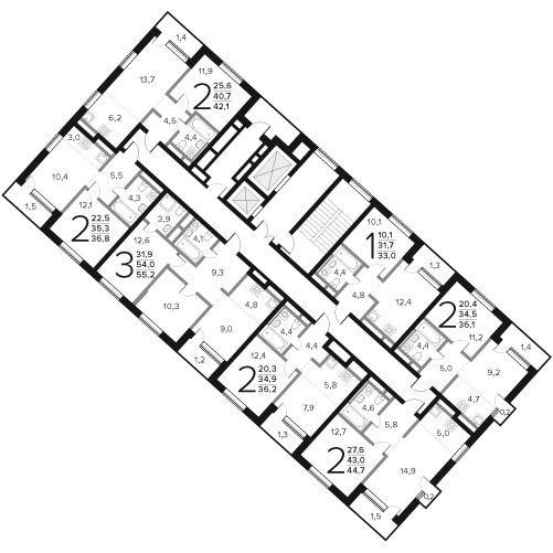Общая площадь: 42.1 кв.м., жилая: 25.6 кв.м., площадь кухни: 6.2 кв.м. Этаж: 6.