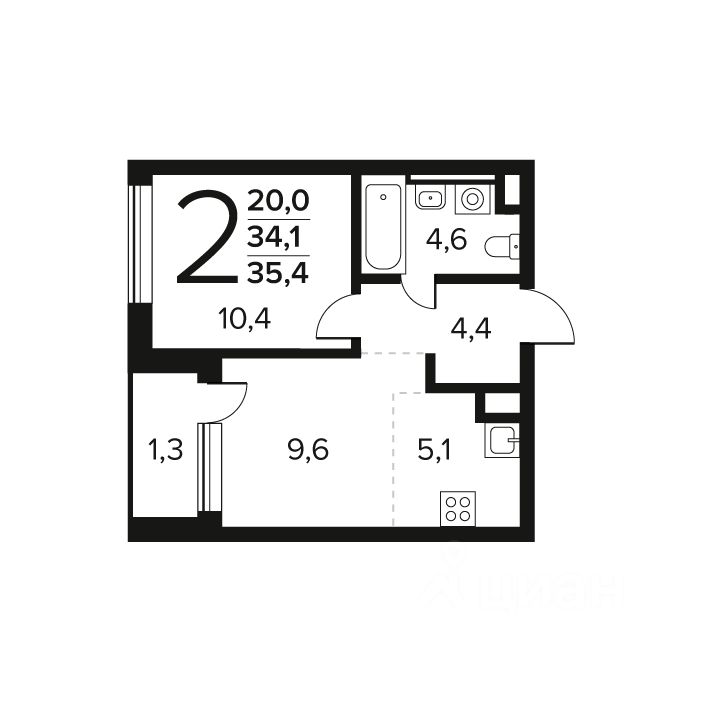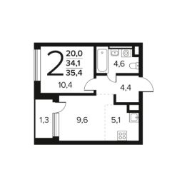 Общая площадь: 35.4 кв.м., жилая: 20.0 кв.м., площадь кухни: 5.1 кв.м. Этаж: 1.