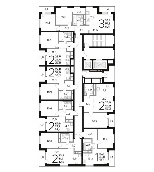 Общая площадь: 60.1 кв.м., жилая: 35.1 кв.м., площадь кухни: 7.2 кв.м. Этаж: 4.