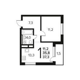 Общая площадь: 37.3 кв.м., жилая: 11.2 кв.м., площадь кухни: 13.3 кв.м. Этаж: 8.