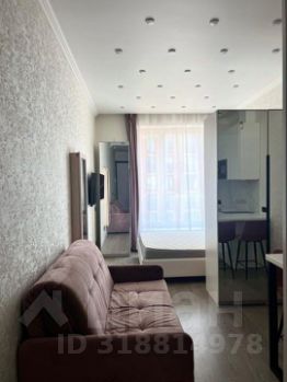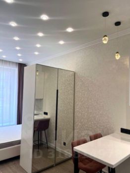 КВАРТИРА: Стильная студия в современном жилом комплексе на 4 этаже общей площадью 25,2 кв. м, жилой площадью 20 кв.м., кухней 3 кв.м., высота потолков составляет 3 м. В студии выполнен дизайнерский ремонт, имеется современная мебель, встроенная кухня и бытовая техника.