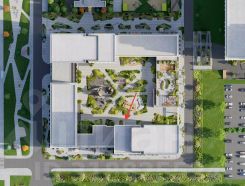 — Гранд-лобби с зоной ожидания, кафе, коворкингом и рабочим пространством, центральным озеленением и детской зоной