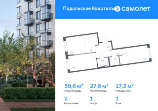 Предлагается 2-комнатная квартира комфорт-класса 59,61 кв.м в корпусе 1 на 1 этаже, в ЖК "Подольские Кварталы"