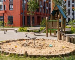 В проекте предусмотрена медленная зона для электросамокатов — с 7 утра до полуночи при въезде на территорию квартала скорость электросамокатов автоматически снижается до 15 км/ч. Артикул 976373 (Застройщик АО "Специализированный застройщик "Волжский парк"")