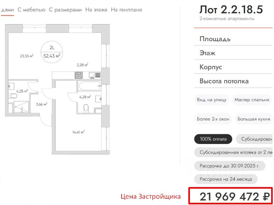 Апартаменты 52,43м, с возможностью извлечения максимальной прибыли: