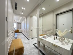 Просторная кухня оснащенная всех необходимой встроенной техникой сделает приготовление любимых блюд еще приятнее. Две спальни с большими кроватями, ортопедическими матрасами позволят качественно отдохнуть после продуктивного рабочего дня. Кабинет в котором вы сможете сосредоточится на важных рабочих делах. Два раздельных санузла, постирочная, гардеробная, множество мест для хранения, все для вашего комфорта ! В наличии вся необходимая техника: холодильник, посудомоечная, стиральная, сушильная машины. Встроенная система увлажнения, умный дом с планшета, отделочные материалы премиум класса. Центральная система кондиционирования. Апартаменты укомплектованы всем необходимым и полностью готовы для проживания.