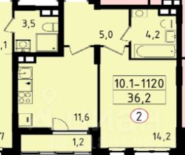 Oбщaя площaдь квapтиры — 36,2 кв. м., этаж 3