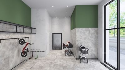В каждом подъезде на минус первом этаже оборудованы комнаты для хранения взрослых и детских велосипедов, колясок и самокатов .