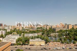 Семнадцать панорамных окон апартамента обращены в сторону Пресненского пруда, зоопарка, Останкинской телебашни, высотки на Кудринской площади, планетария. Все окна полноценные, с возможностью их открывать.