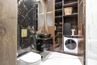 Гостевой сан/узел с зоной постирочной. Просторная входная зона с вместительными втроенными шкафами.
