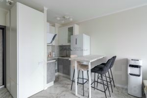 - кухня-гостиная со всей необходимой бытовой техникой (холодильник, посудомоечная машина, микроволновая печь, варочная панель, вытяжка) и зоной для отдыха с диваном, который раскладывается в полноценное спальное место;