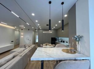 О квартире: новый современный ремонт, есть вся необходимая мебель и техника. Планировка: просторная кухня-гостинная, спальня, совмещенный санузел.