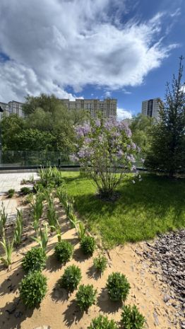 Охраняемая закрытая территория. Собственный двор-парк на территории и оранжерея. Детские площадки для разных возрастов. Спортивные площадки, зона для BBQ и отдыха, 2 детских сада и школа не территории. Выход на благоустроенную набережную р. Раменка.