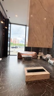 Общая площадь квартиры 80 м2. Высота потолков 3,1 м. Высота панорамных окон 2,7 м., производства шуко, предусмотрена функция проветривания. Просторная кухня-гостиная, две полноценные ванные комнаты, мастер спальня, гардеробная комната. На каждом этаже есть техническая комната для установки блока кондиционера, трасса для кондиционера заведена в квартиру. На этаже расположены кладовые помещения. Бесшумные скоростные лифты