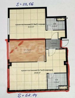 Пространство апартаментов организовано в виде двух просторных отдельных квартир: двухкомнатной и однокомнатной .