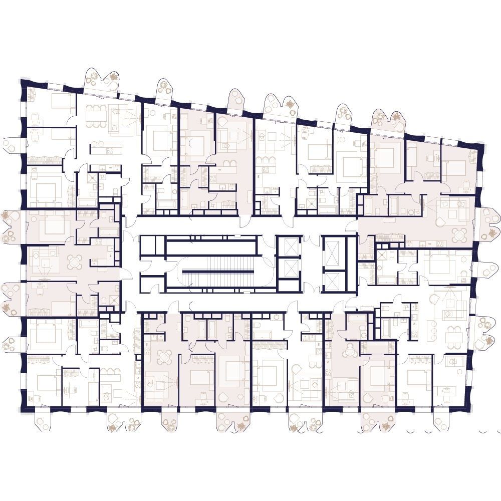 Уникальные форматы квартир с мастер-спальнями, приватными террасами, балконами, а также пентхаусы с открыточными видами на город.