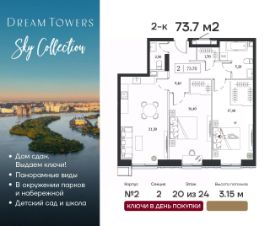 Общая площадь: 73.7 кв.м. Высота потолков от 3.15 м.