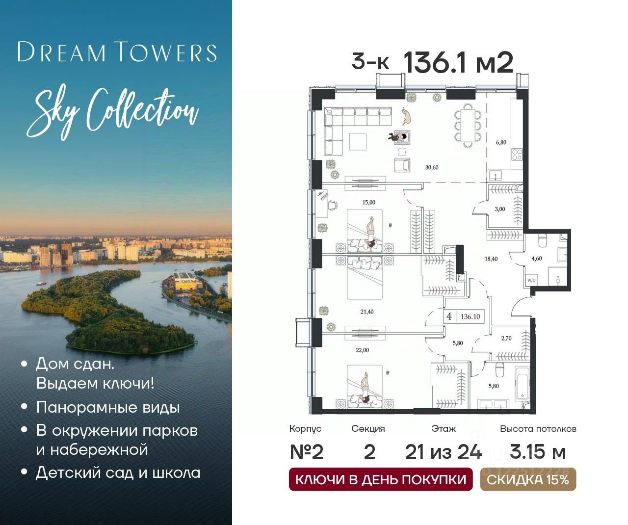 ЖК Dream Towers проект премиум-класса в окружении парков и набережной, с полностью готовой инфраструктурой для комфортной жизни и отдыха.