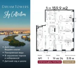 Продаётся 5-квартира на 19 этаже 24-этажного дома (1 корпус).