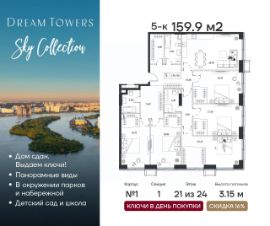 Продаётся 5-квартира на 21 этаже 24-этажного дома (1 корпус).