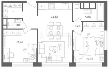 Квартира расположена на 9 этаже 41-этажного монолитного дома, построенного в 2025 году. Благодаря высоте потолков в 3,2 метра и большим окнам квартира наполнена естественным светом. В квартире два раздельных санузла, комнаты изолированы, что создаёт комфортные условия для проживания. Мебель и техника не установлены — готова для реализации индивидуального проекта.