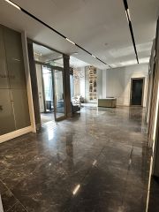 Кухня-гостиная, и три изолированные комнаты, совмещенный санузел. Восемь окон в пол, высота потолка 3 метра.