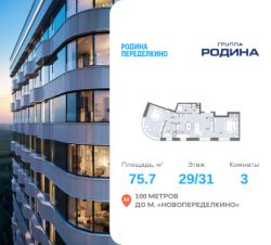 Продаётся 3-комнатная квартира площадью 75.7 м² на 29 этаже в Жилом Комплексе "Родина Переделкино".