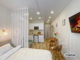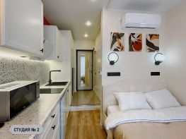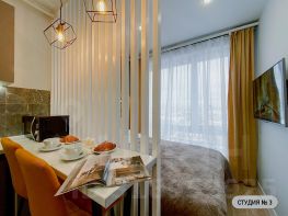 Апартаменты с современным ремонтом разделены на три изолированные студии ~ по 15 кв.м. Каждая студия полностью укомплектована мебелью, техникой, всем необходимым для сдачи жилья.