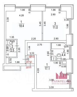 • поставить 1 перегородку, таким образом получая евро-3 с 2 санузлами (2 спальни 14 и 10 кв м, кухня-гостиная)