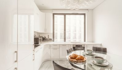 Единственный двухуровневый пентхаус в комплексе "Пресня Сити". Пентхаус расположен на 39-40 этажах в "Восточной башне". Выполнена дизайнерская отделка премиум-класса с использованием натурального белого мрамора. Интерьер оформлен в белоснежных тонах с контрастными тёмными акцентами.