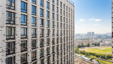 Главное о локации. "Пресня Сити" — три башни бизнес-класса по 44 этажа в неоклассическом стиле. Фасады облицованы клинкерной плиткой с градиентом от терракотового у основания до светло-кофейного на верхних уровнях. Лобби каждой башни отражает стихию: огонь с камином и красными акцентами, вода с глубокими синими тонами и земля с зелёными мотивами. Для жителей открыты фитнес-клуб, spa, супермаркет, кафе, детский сад и центр раннего развития. Дворы оформлены по проекту BuroMoscow: прогулочные аллеи, детские и спортивные площадки, лаунж-зоны в зелени.