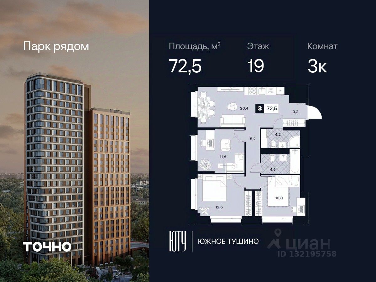 ЮТУ-камерные небоскребы бизнес-класса с исключительной архитектурой, видовыми квартирами и подходом к большой воде-благоустроенной набережной канала имени Москвы. Проект ЮТУ создает идеальный баланс жизни в городе. Это приватный оазис, где в любой момент можно сменить контекст и выбрать любой из тысячи маршрутов к активному отдыху и ярким впечатлениям. Локация премиум-класса • Первая линии в прибрежной части Химкинского водохранилища • Исключительно тихий и зелёный район Южное Тушино • За 2 минуты можно спуститься к воде, за 10 минут найти зеленые парки и готовую инфраструктуру, за 30 минут доехать до Кремля Концепция проекта • Две футуристичные башни, соединенные торговой галереей от бюро ATRIUM • 60 неповторяющихся планировок: квартиры с угловым "плавным" панорамным остеклением, мастер-спальнями и гостиными до 39м² и просто очень большие квартиры площадью до 128,6 м² • Беспрецедентная коллекция видов-в проекте 80 % видовых квартир Чувство эксклюзивности • Своя приватная жилая экосистема -только для резидентов домов • Лаунж-терраса на крыше • Пространство скрыто от посторонних глаз-с трех сторон его окружают строения проекта Прогрессивные технологии • 3-уровневая система безопасности (Face ID, BLE-метки, видеонаблюдение) • Умный паркинг с распознаванием номеров Проект федерального девелопера ТОЧНО-из ТОП-3 застройщиков России. Компания в проекте реализует ответственный подход к развитию пространств для благополучной жизни человека. И что в ЮТУ особенное воплощение приобретает концепция человекоцентричности, как заметная грань девелопмента ТОЧНО.