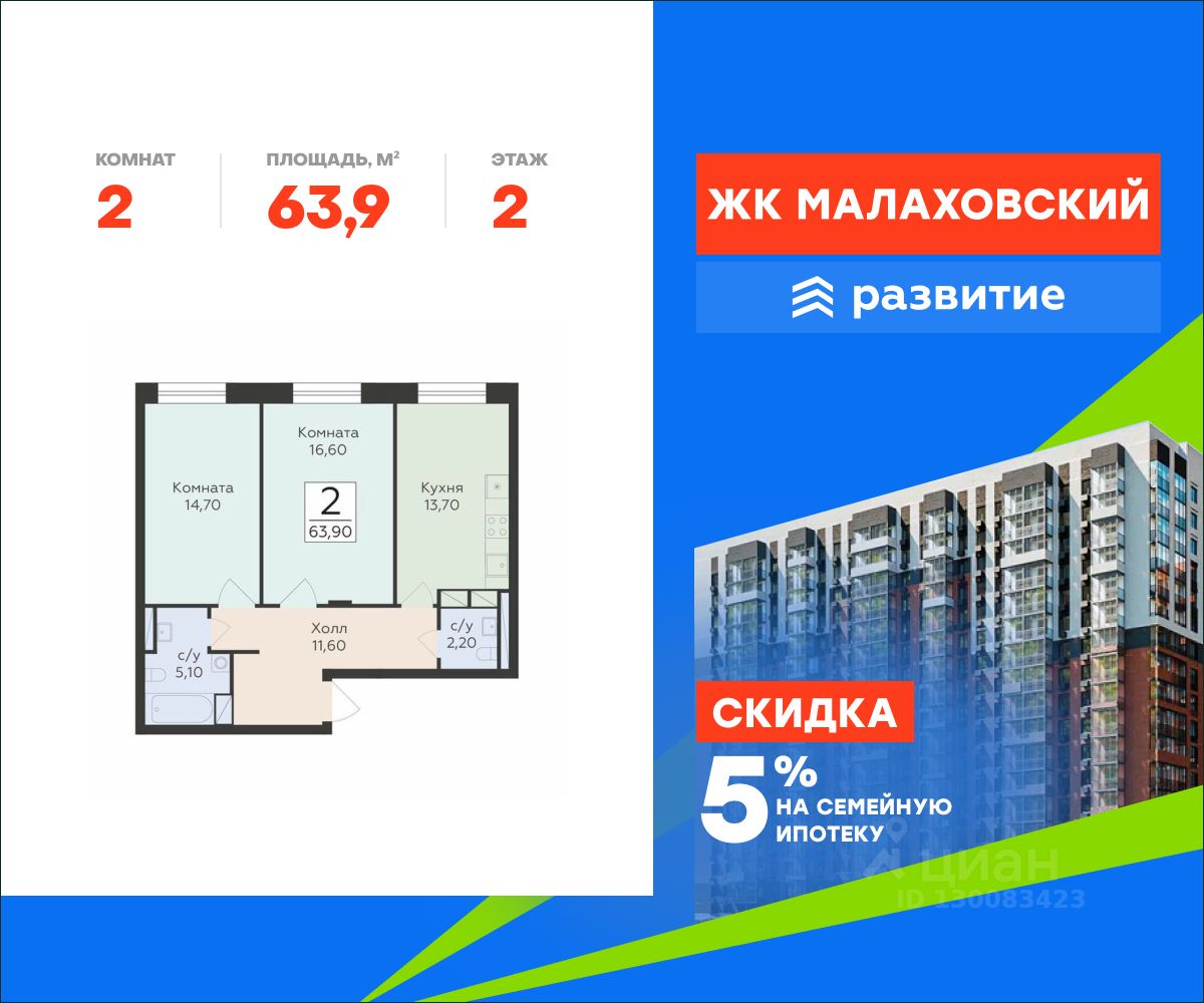"Малаховский" - жилой комплекс в Раменском районе Подмосковья, идеально подходящий для семей с детьми. Проект от федерального застройщика ГК "Развитие" находится в тихом и зеленом микрорайоне Родники и отличается удобной транспортной связью с Москвой и Люберцами. Три дома высотой 17 этажей с видами на озеро и парк, просторные квартиры, приватный двор-патио с ландшафтным дизайном и доступная инфраструктура обеспечат жителям новых квартир все преимущества городской жизни в живописном природном окружении.