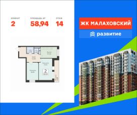 Продается 2-комнатная квартира  площадью 58.94 . Квартира расположена на 14 этаже 17 этажного дома, в 202 корпусе.