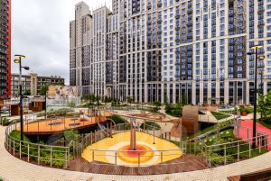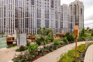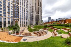 Одна из самых больших придомовых территорий в Москве, бульвары, прогулочные зоны, пруд, площадь с фонтаном, детские и спортивные площадки. Детский сад на территории, и множество муниципальных и частных образовательных организаций в пешей доступности.