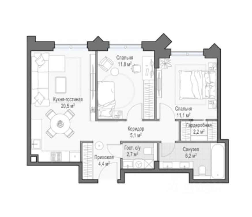 Продается двуспальная квартира с кухней-гостиной на 23 этаже ЖК Дом Достижение, с окнами на восток, с видом на Останкинскую башню.