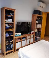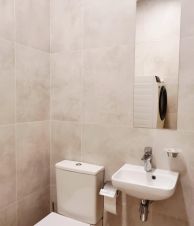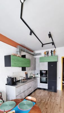 В спальне и гостиной установлены кондиционеры Toshiba. Кухня оборудована техникой Neff, посудомоечной машиной Siemens. Два санузла с сантехникой AM-PM, плитка керамогранит, проточный водонагреватель Stiebel Eltron. Прихожая с вместительным шкафом от компании Mr.Doors со встроенной гладильной доской и отдельно комната-кладовка. При ремонте сохранен строительный кирпич, который отшлифован и покрашен краской Dulux и Tikkurila. Входная дверь от компании СТАЛ. Шинная система освещения с трековыми светильниками Neko от компании Стильный свет. Ламинированная доска Kronotex 33 класса, межконтинентальные двери Nordic 5.1 под покраску.