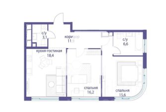 Планировка квартиры предполагает: просторную кухню-гостиную, две изолированные спальни, два совмещенных санузла и зону коридора.
