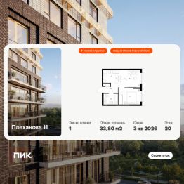 Продаётся 1-комн. квартира площадью 33,8 кв.м на 20 этаже 24 этажного дома (Корпус 1.4, Секция 4) проекта ПИК Плеханова 11. Светлый просторный подъезд на уровне земли, функциональная планировка, большие окна, c отделкой.