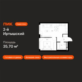 Продаётся 1-комн. квартира площадью 35,7 кв.м на 9 этаже 9 этажного дома (Корпус 1.6, Секция 6) проекта ПИК 2-й Иртышский. Светлый просторный подъезд на уровне земли, функциональная планировка, большие окна, c отделкой.