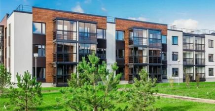 Планировка: кухня-гостиная, лоджия, спальня, большой санузел, гардеробная.