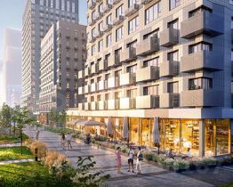 Проект состоит из зданий разной высоты и разной по характеру архитектуры. Узнаваемой доминантой квартала станет башня из стекла и металла, напоминающая водопад.