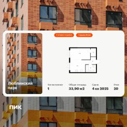 Продаётся 1-комн. квартира площадью 33,9 кв.м на 20 этаже 25 этажного дома (Корпус 12, Секция 5) проекта ПИК Люблинский парк. Светлый просторный подъезд на уровне земли, функциональная планировка, большие окна, c отделкой.