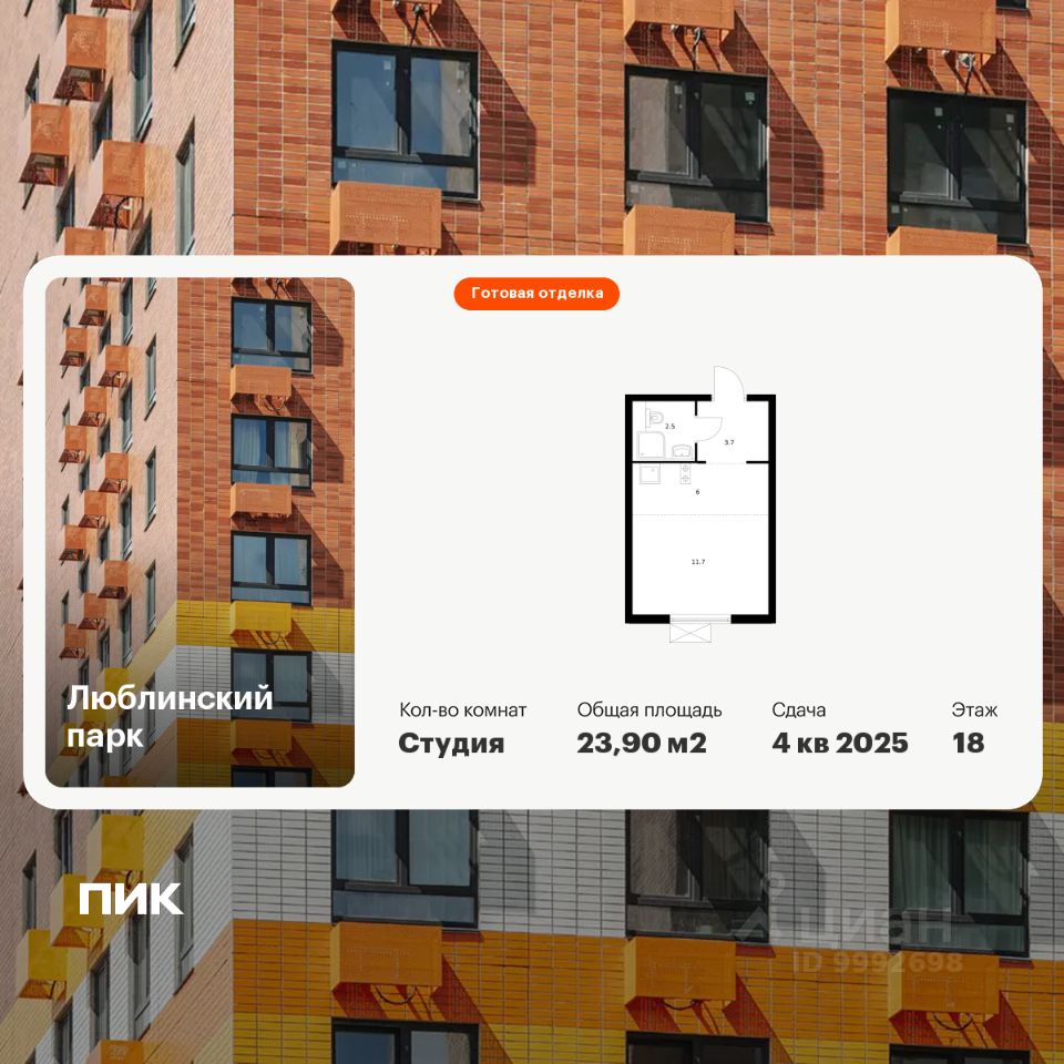 Продаётся квартира-студия площадью 23,9 кв.м на 18 этаже 33 этажного дома (Корпус 14.5, Секция 3) проекта ПИК Люблинский парк. Светлый просторный подъезд на уровне земли, функциональная планировка, большие окна, c отделкой.