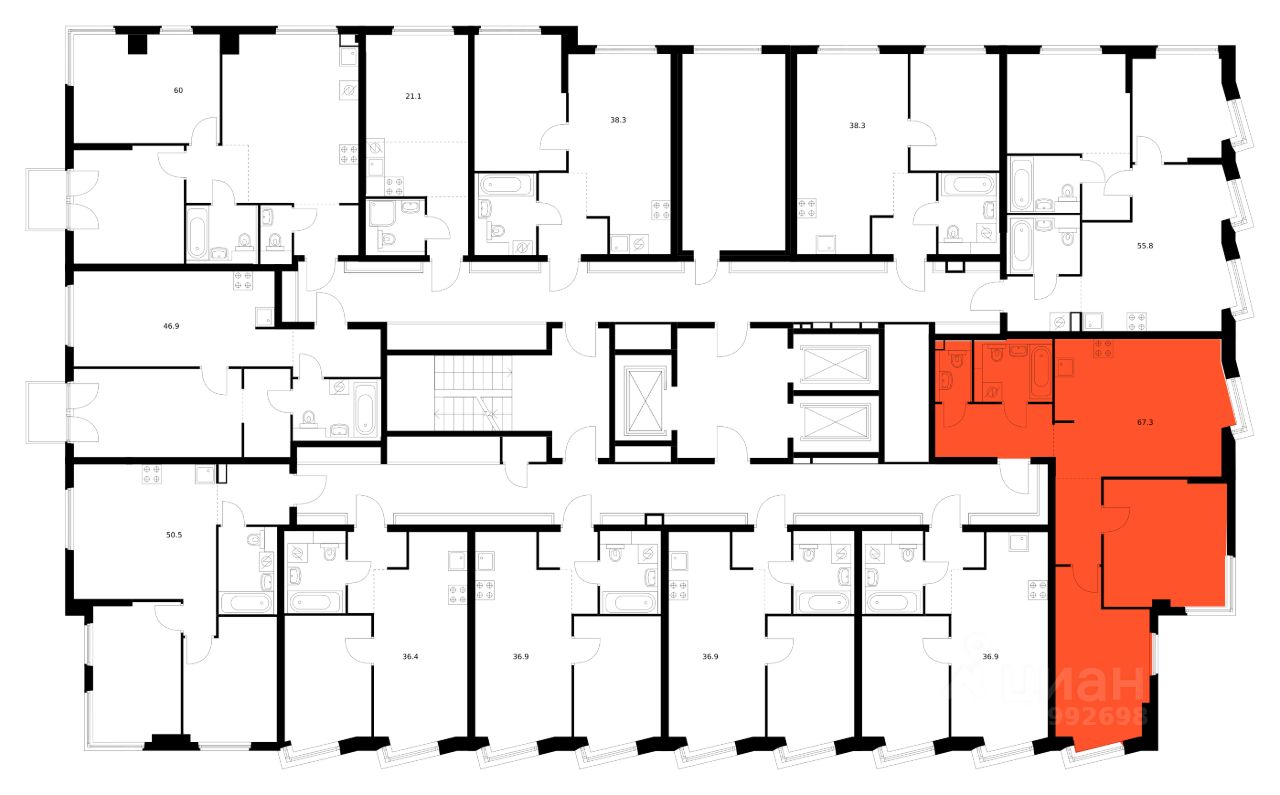 Продаётся 2-комн. квартира площадью 67,3 кв.м на 12 этаже 12 этажного дома (Корпус 1.1.2, Секция 2) проекта ПИК Кронштадтский 9. Светлый просторный подъезд на уровне земли, функциональная планировка, большие окна, предчистовая отделка.