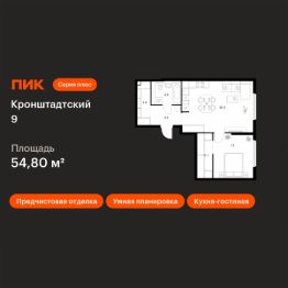 Продаётся 1-комн. квартира площадью 54,8 кв.м на 10 этаже 12 этажного дома (Корпус 1.1.2, Секция 2) проекта ПИК Кронштадтский 9. Светлый просторный подъезд на уровне земли, функциональная планировка, большие окна, предчистовая отделка.