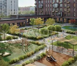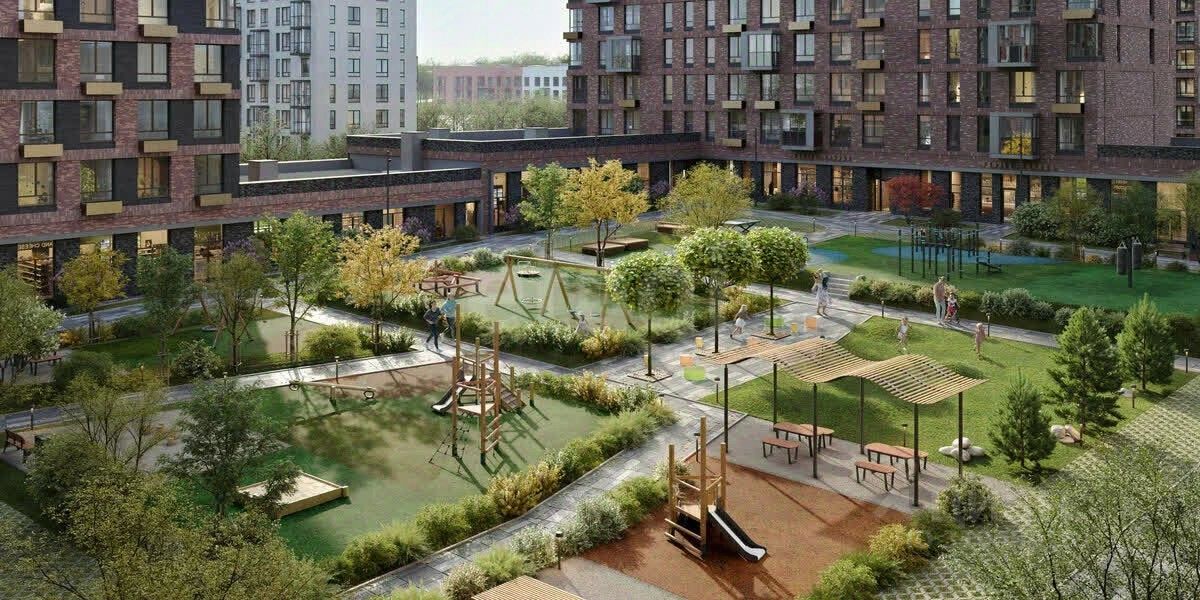 Благоустроенные дворы-парки, закрытые от машин.